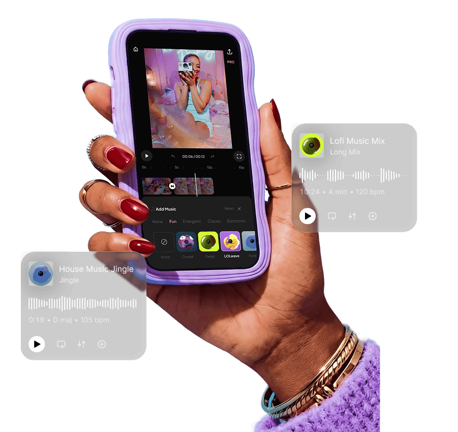 ユーザーが自分の動画、ゲーム、ポッドキャストのためにユニークでロイヤリティフリーのトラックを作成できるようにし、著作権リスクをゼロにします。