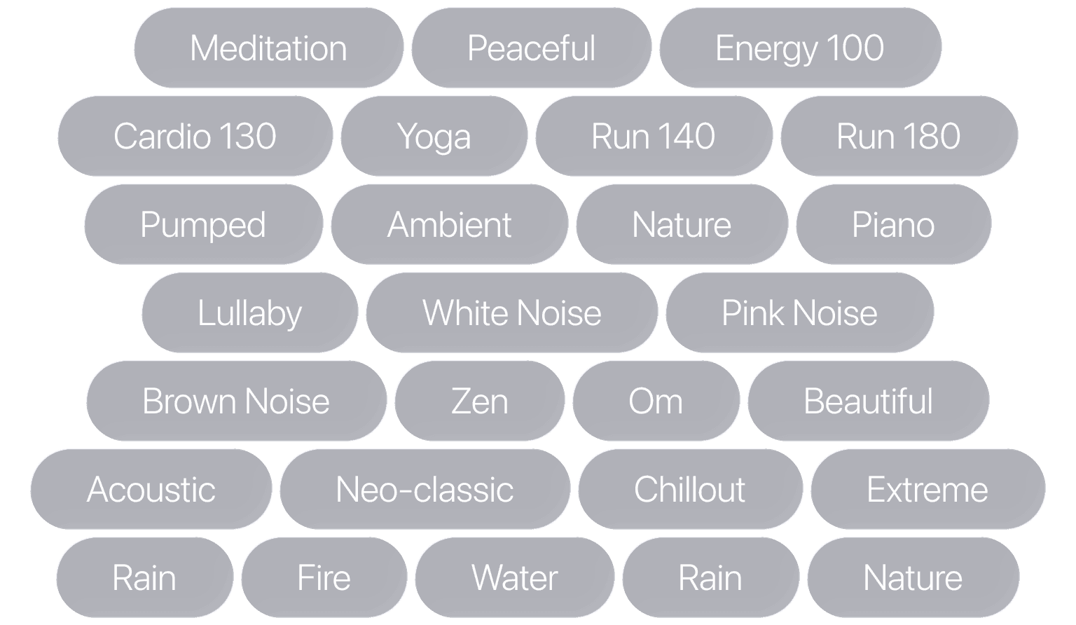 Special channels designed for fitness, meditations, sleep and running